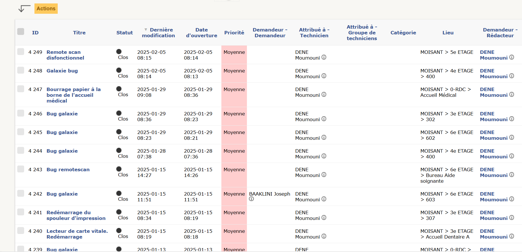 Dans notre organisation, l'outil de gestion des incidents GLPI n'est pas utilisé directement par les utilisateurs pour créer des tickets. En raison de contraintes liées à leur charge de travail notamment dans un contexte médical où la priorité est donnée aux soins les utilisateurs, comme les praticiens, ne sont pas tenus de formaliser eux-mêmes les incidents rencontrés. Ainsi, ce sont les administrateurs ou techniciens du support informatique qui se chargent de créer les tickets dans GLPI après avoir pris connaissance du problème via un appel à la hotline ou une autre forme de signalement informel.